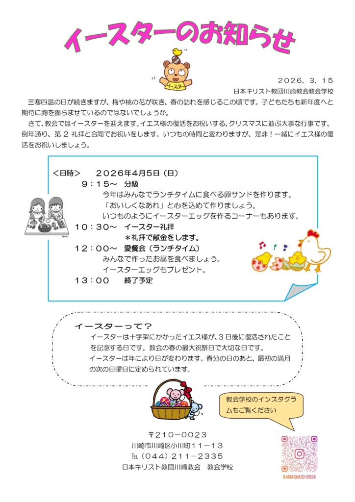 お知らせのうち、教会学校からのものです